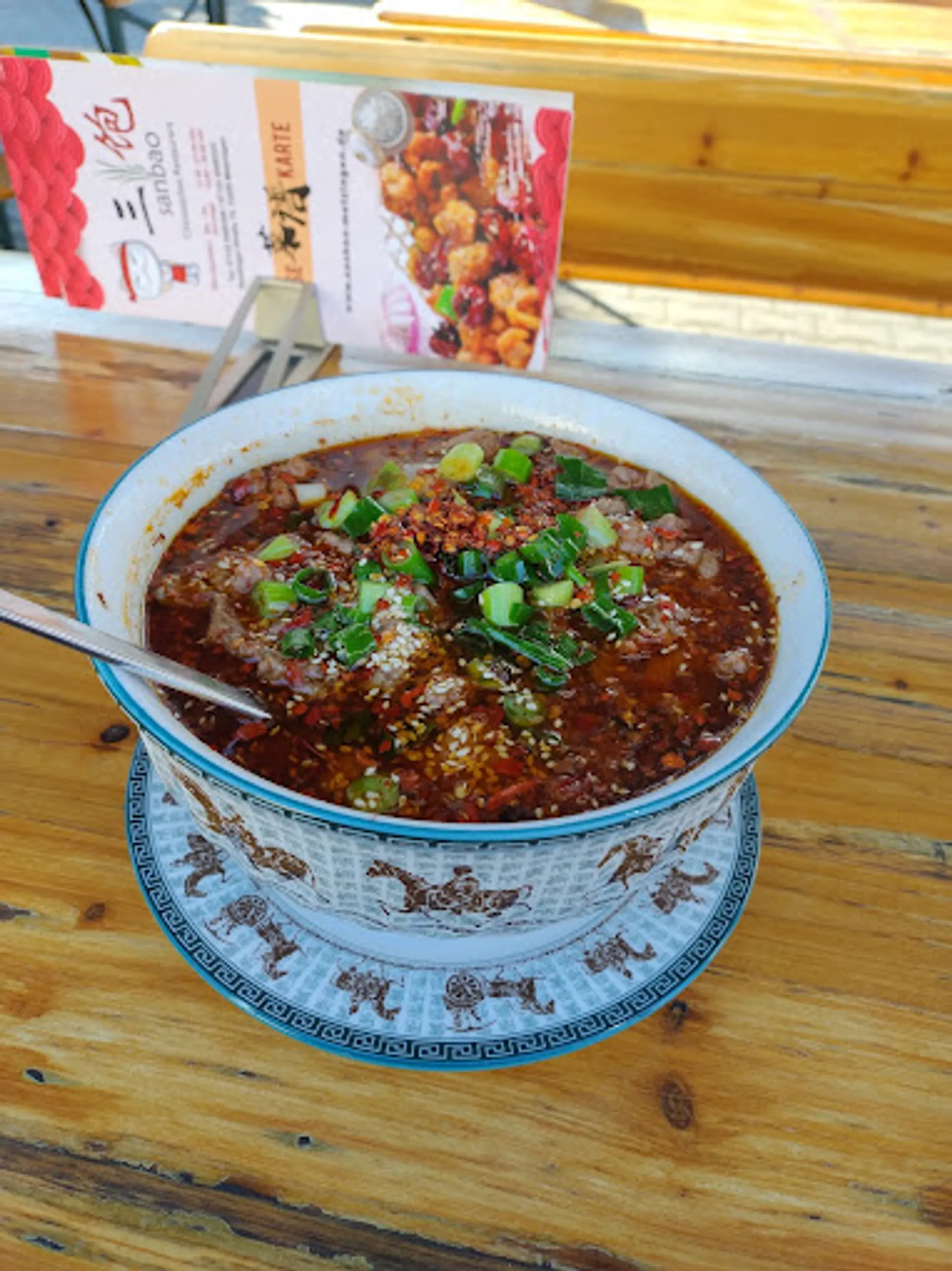 Section titled “3. Sanbao Restaurant, Metzingen – “Authentic Chinese Culinary Art in a Functional Ambiance””Sanbao in Metzingen offers a culinary journey into the diversity of authentic Chinese cuisine, far from the usual clichés. Here you will find refined dishes prepared with fresh ingredients and traditional techniques, presented in a modern and clean ambiance.